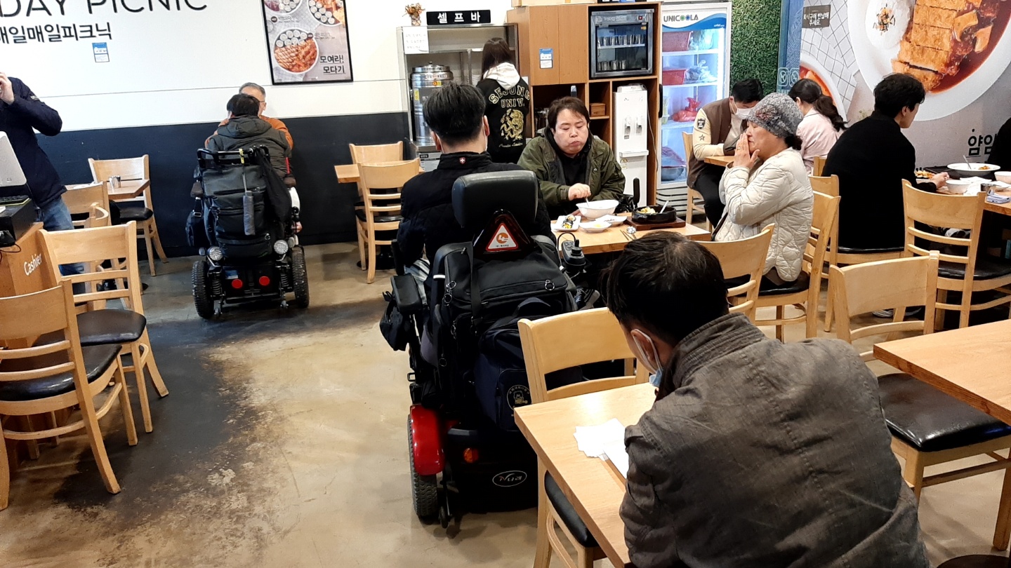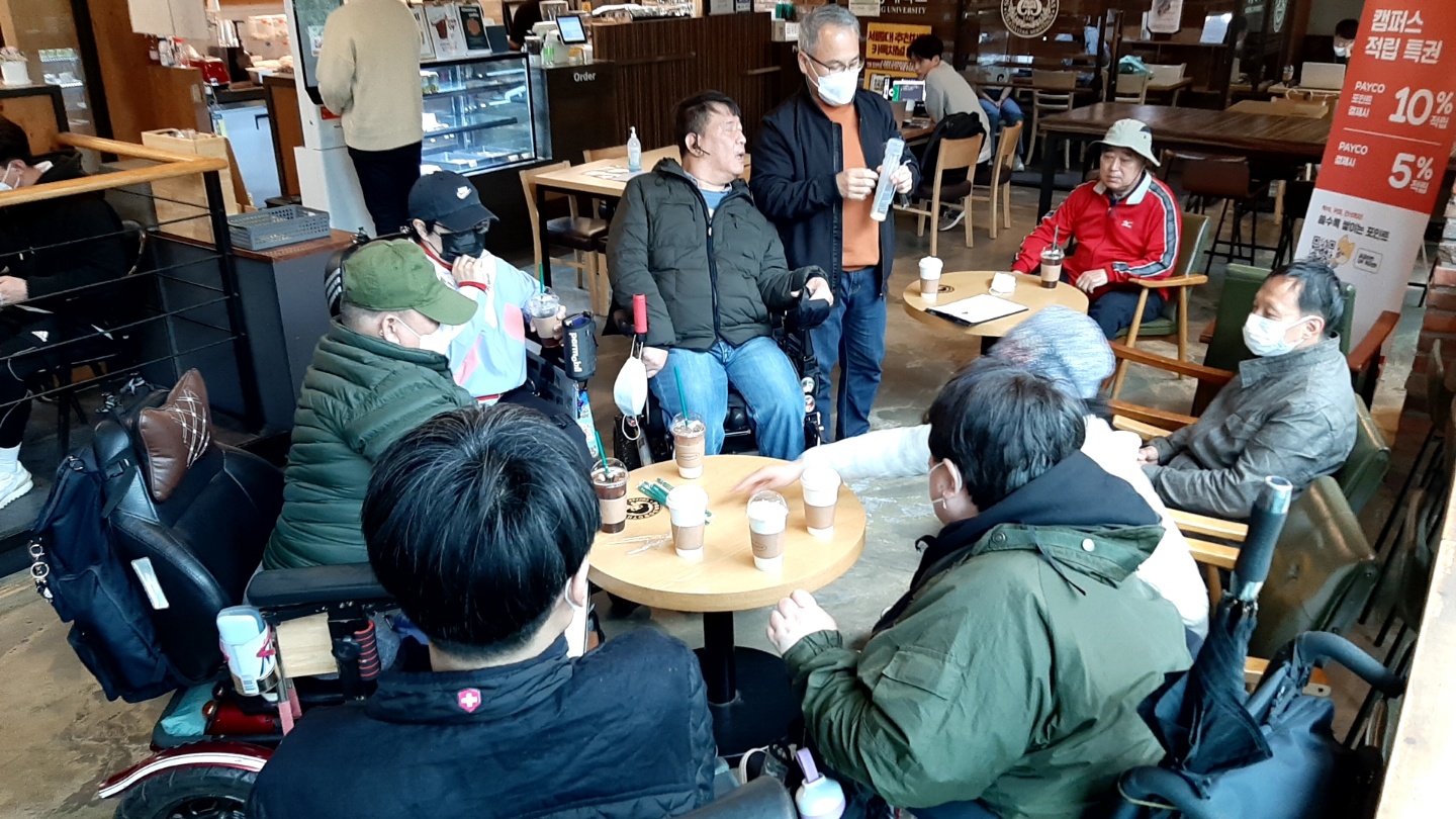 나. 문화관광지 장애인 대중이용시설(위생업소) 조사 - 2차 모임에서 야외 봄나들이를 추가로 구성하여 활동하자는 의견 제시 - 임ㅇㅇ : 한국문화정책개발원의 조사결과에 따르면 장애인들의 57% 이상이 여가활동에 관심을 가지고 있는 것으로 나타났으며, 행복한 삶의 조건으로 '신체적으로 건강한 것' 다음으로 '정신적으로 풍요로운 삶'에 높게 응답하였다. - 이ㅇㅇ : 봄을 맞이하여 장애인의 야외활동이 늘어나게 됨에 따라 장애인들이 여가시설(유원지 등)을 이용할 때 편의시설을 조사할 필요성이 있다. - 신ㅇㅇ : 장애인들은 경제적 문제와 심리적 위축, 편의시설과 교통편 및 장애인이용 여가시설의 부족 등으로 인해 여가활동을 만족하게 누리지 못하고 있는 실정이다. - 신ㅇㅇ : 장애인에게 여가활동은 단순히 기본적 인권보장과 문화향유에 대한 기회균등 차원만이 아니라 사회적 기능 향상을 꾀하는 재활적 관점, 궁극적으로 '삶의 질' 향상을 통한 주류화 실현하고자 여가활동 현장조사 필요하다. - 4월 봄나들이 진행일정 논의(장소, 시간, 참여인 확인) - 공원 식당 이용, 이동 동선 확인 - 야외활동 시 개인별 필요사항 지원 |